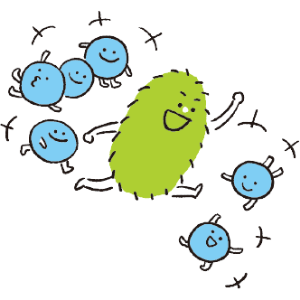 クロレラの特有成分C.G.F. には、乳酸菌が活動しやすい環境をサポートする働きがあります。乳酸菌がしっかり働ける環境は、健康的な状態なのです。
